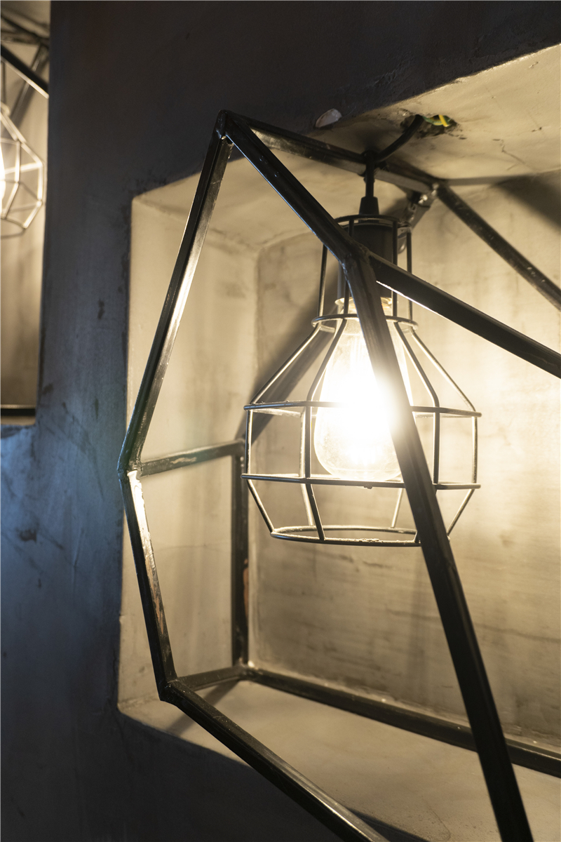 構(gòu)成的手法,在壁龕中的應(yīng)用,體現(xiàn)了設(shè)計(jì)師立體主義的思維。變形、伸展、突破設(shè)計(jì)出造型各異的鐵框,讓工業(yè)氣氛變得更加濃郁。