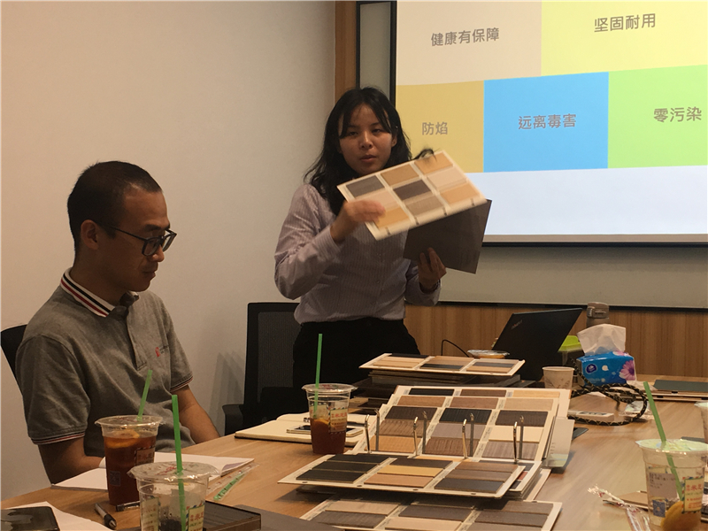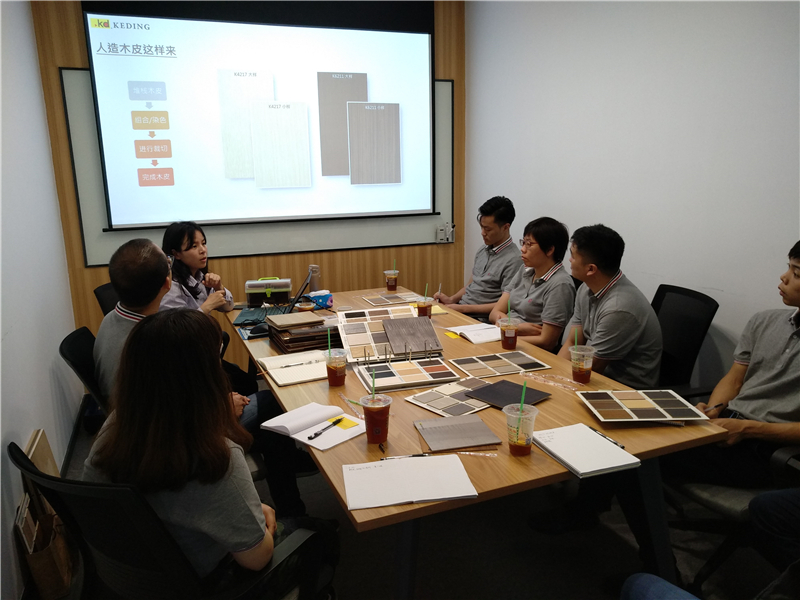 2019年3月22日下午,在珠海環(huán)藝裝飾設(shè)計(jì)部開展了《KD木皮板的認(rèn)識(shí)與交流》分享會(huì)。本次分享會(huì),邀請(qǐng)到臺(tái)灣科定集團(tuán)珠海分公司章丹燕小姐進(jìn)行主講。