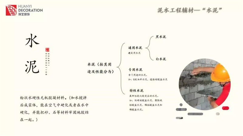 泥水工程輔材內(nèi)容包含水泥、砂、磚、勾縫劑、陶粒及防水涂料等。