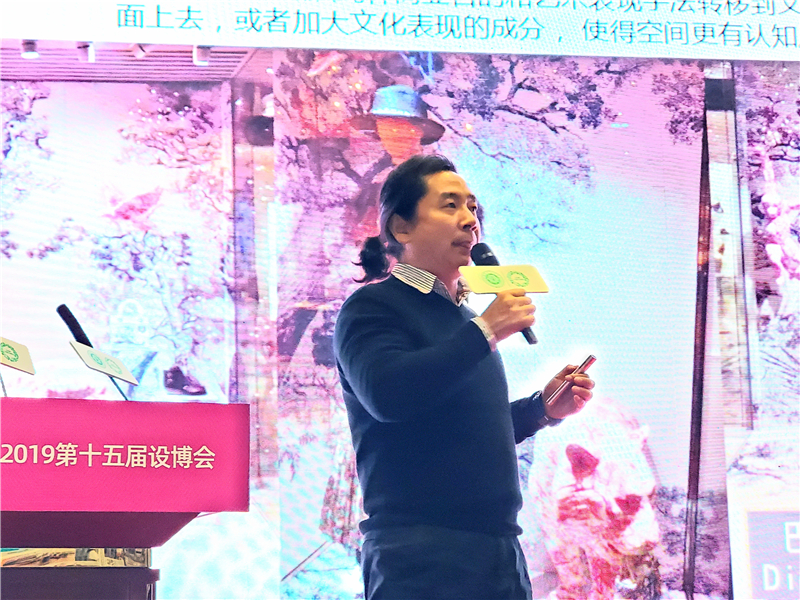 展會(huì)上,珠海市環(huán)藝裝飾總經(jīng)理靳越暉在2019第四屆百?gòu)?qiáng)設(shè)計(jì)院院長(zhǎng)合作與創(chuàng)新發(fā)展高峰論壇活動(dòng)中進(jìn)行了30分鐘的主旨演講,主題為《無(wú)設(shè)計(jì),不文化》。